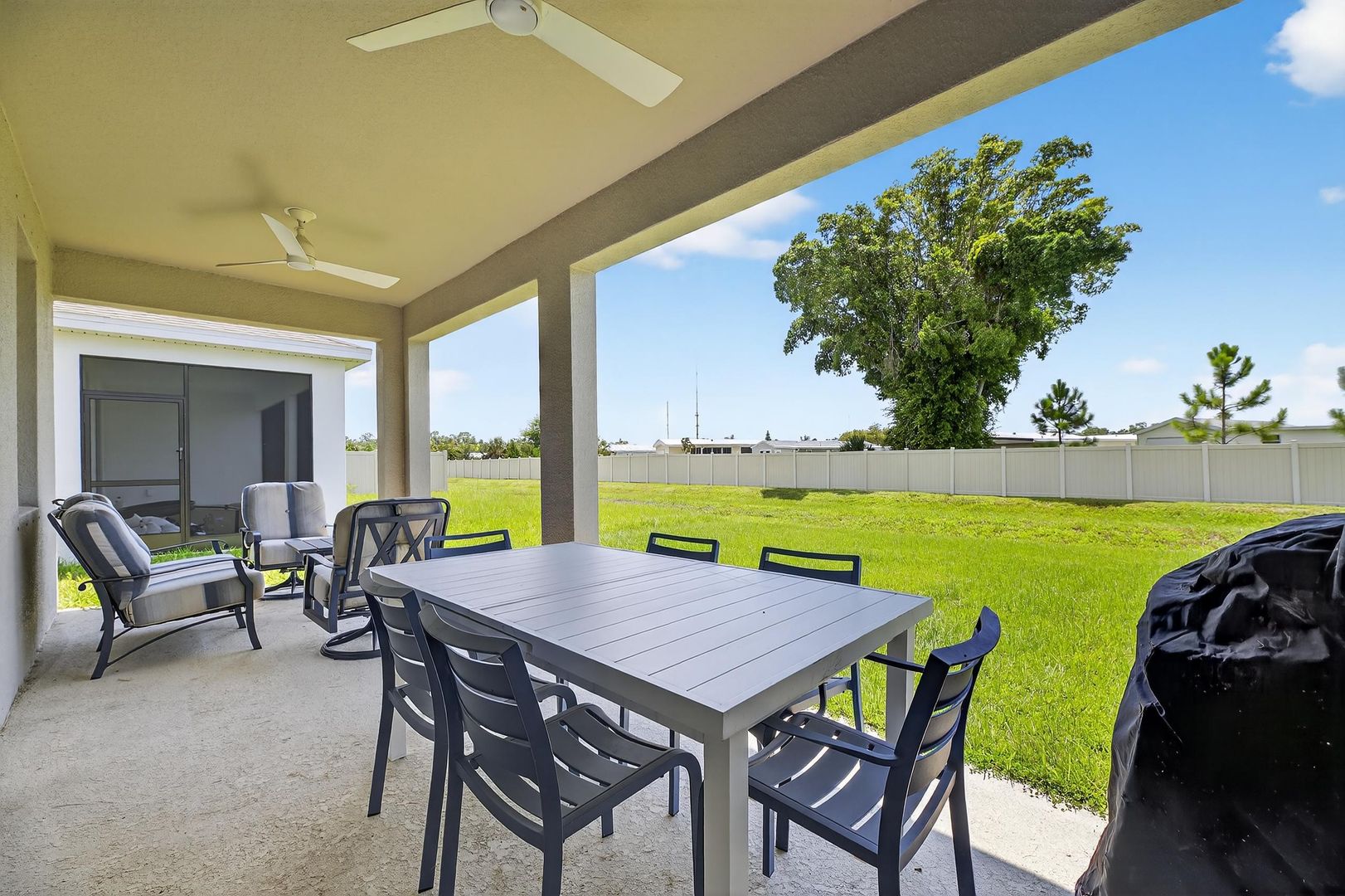 Enjoy Florida living to the fullest with your own private back patio, perfect for morning coffee, evening relaxation, or al fresco dining. Beyond your backyard, the community offers an inviting community pool, providing a refreshing escape on warm days and a wonderful place to socialize with neighbors.